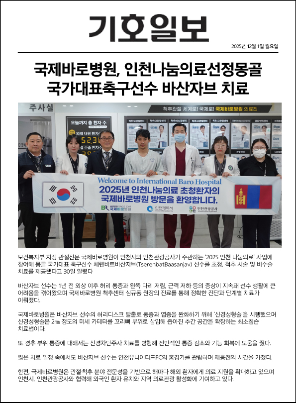 국제바로병원 인천항 국제여객터미널 외국인 골다공증 검사