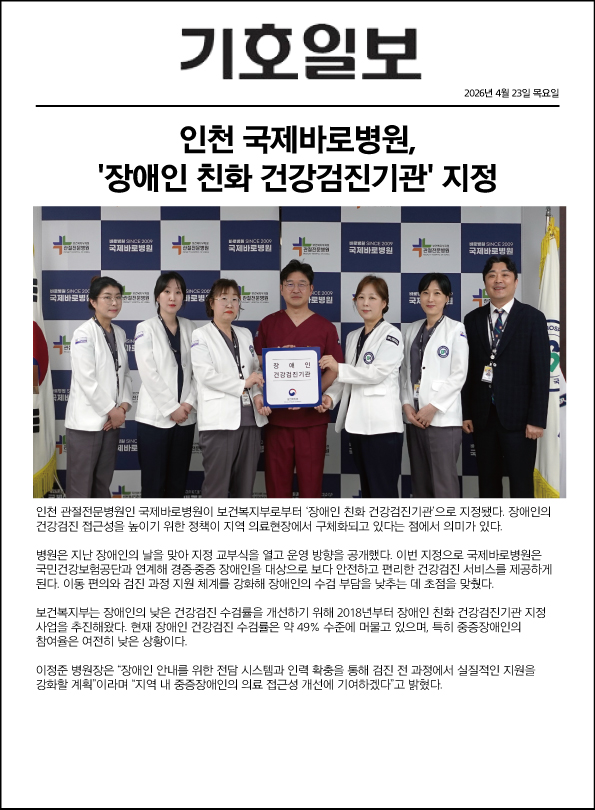 [소식] 보건복지부 국가 장애인친화 건강검진기관 지정승인