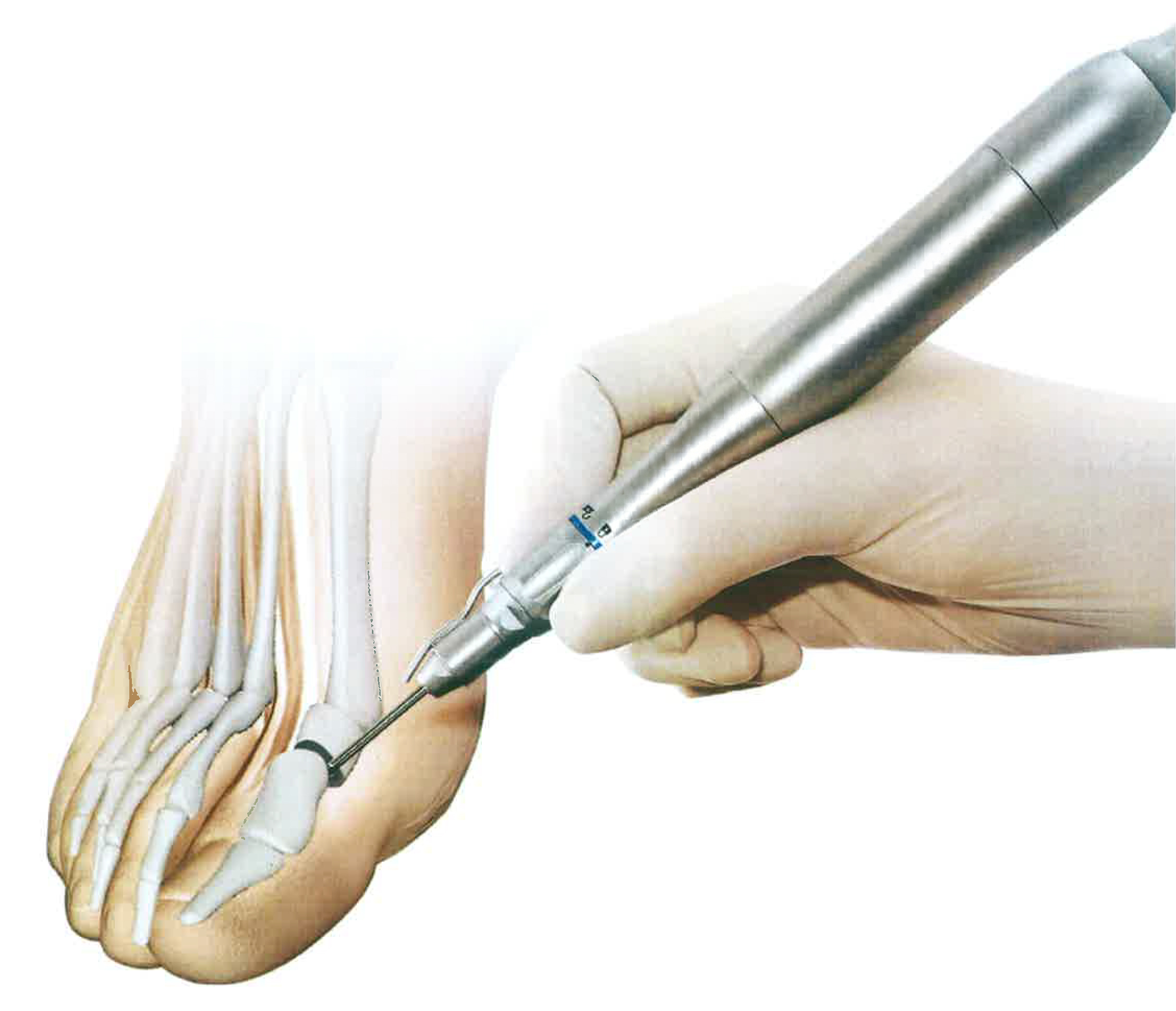 4세대 무지외반증 MITA 수술의 경우 MICA 수술과 그 방식은 동일하지만 뼈를 절골하는 방식의 차이가 있습니다. Chevron 절개 방식이 아닌 Transverse 절개방식을 활용한