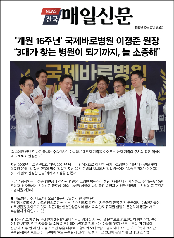 국제바로병원은 늘 처음과 같은 마음을 잊지 않고