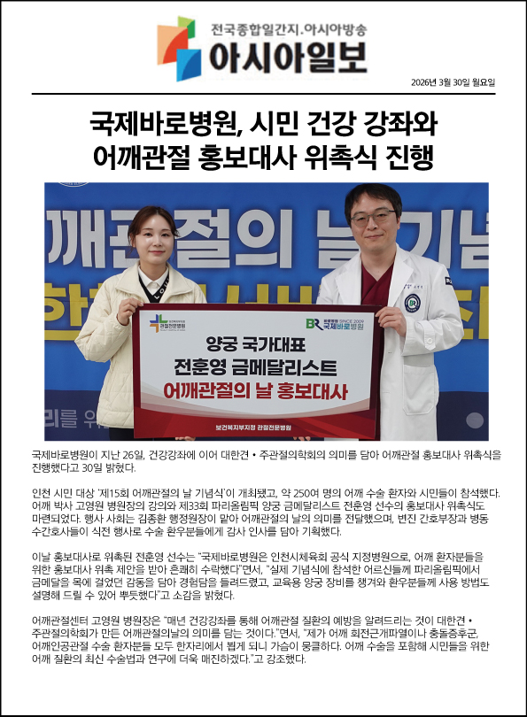 국제바로병원, 2026 어깨관절의 날 기념 어깨관절 건강강좌