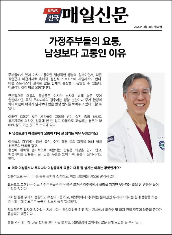 척추골다공증,류마티스관절염 분야 헬스조선-명의 박예수 원장 3월 진료개시